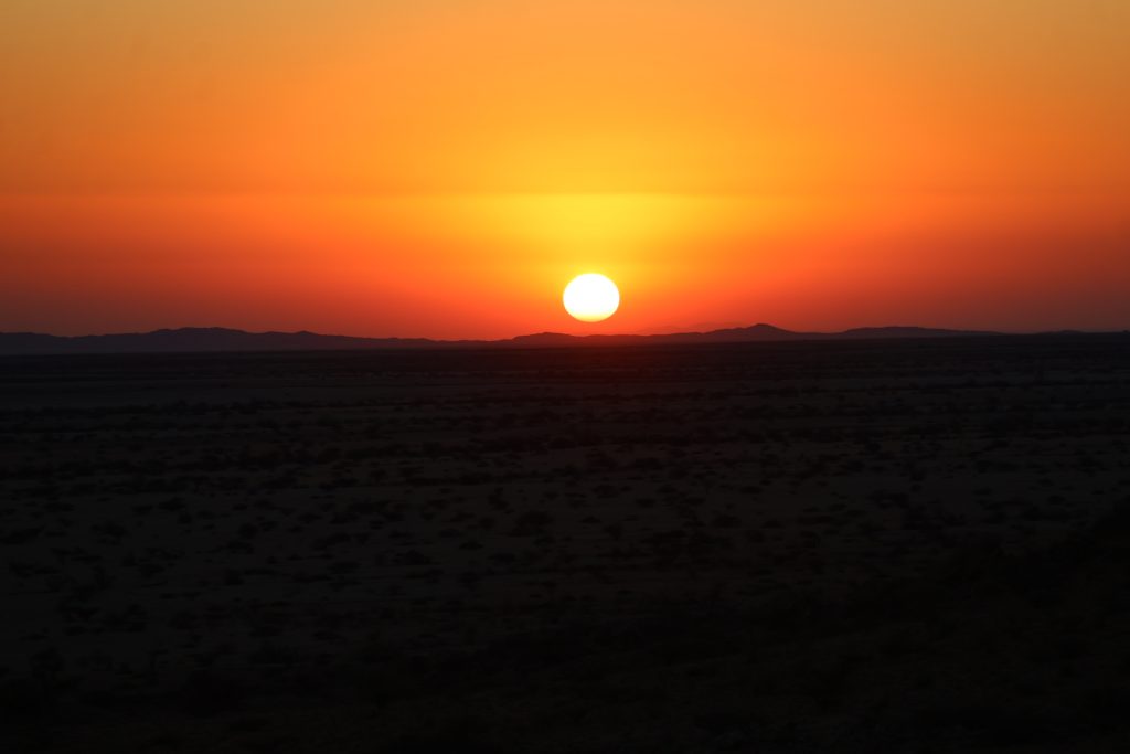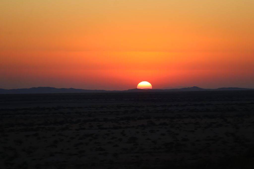 地平線の遙か彼方へ、大きな夕日が沈んでいきました。何度も言いますがアフリカは夕日が特に大きく、美しさが別格。太陽が沈んだ後、紫色に輝く空を見つめながら余韻に浸っていました。