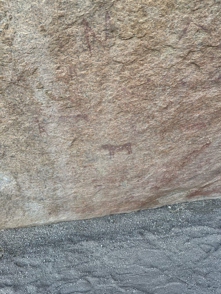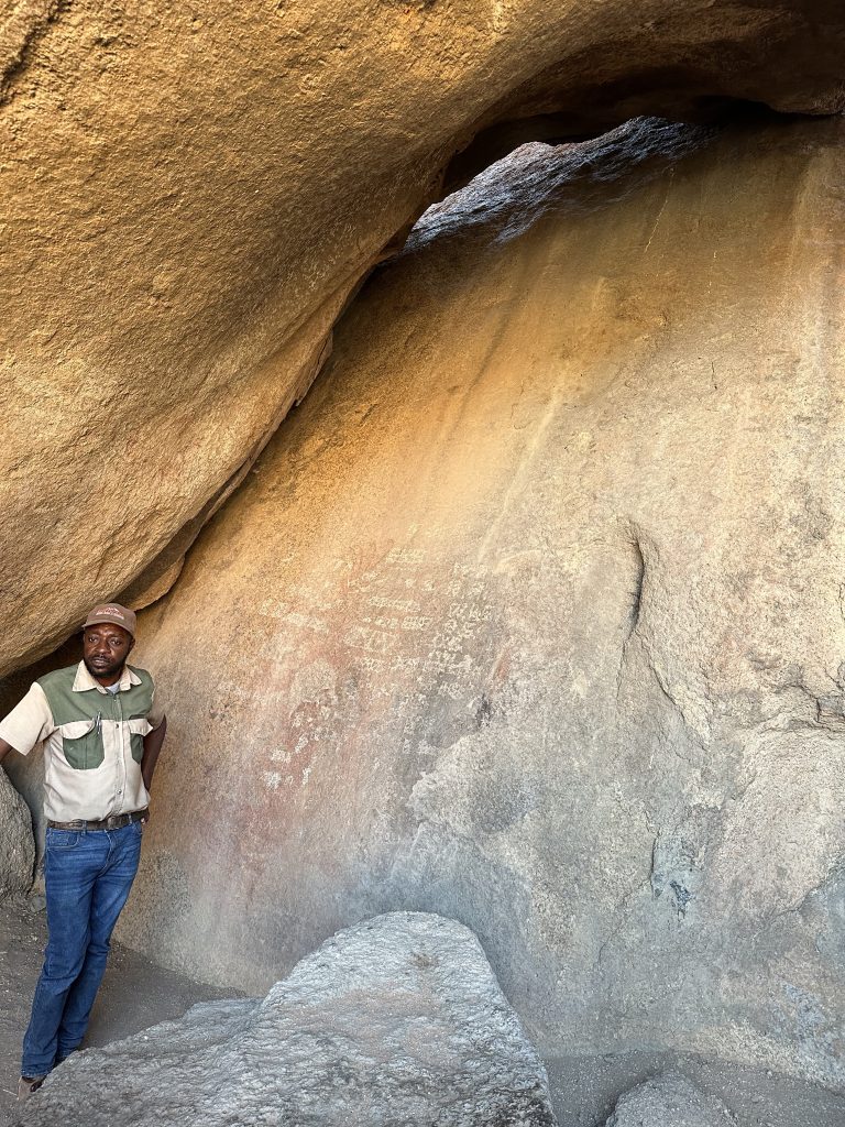 ここにはかつてサン族(ブッシュマン)が棲息しており、彼らが数千年前に書いた壁画が岩肌にそまま現存しておりそれを見学することができます。