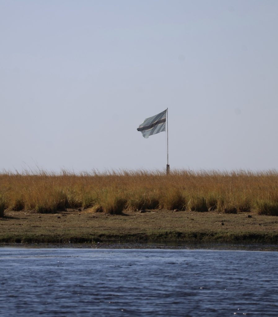 川から見たボツワナ領土です。国旗は水色に黒のラインが入ったシンプルなものです。