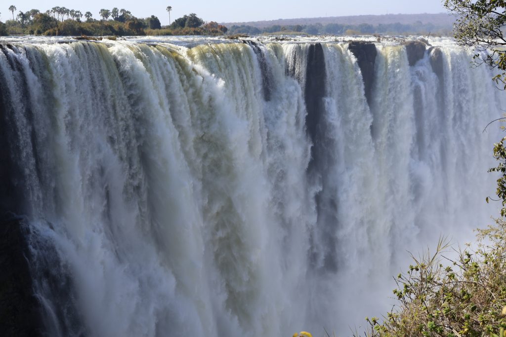 上記の説明の通り、ジンバブエとザンビアの国境にあり、両サイドからの鑑賞が可能で滝の見え方もことなってきます。ジンバブエサイドでは滝全体を楽しむことができ、ザンビアサイドでは水飛沫の凄さをより実感できるのが特徴と、旅人に教えていただきました。