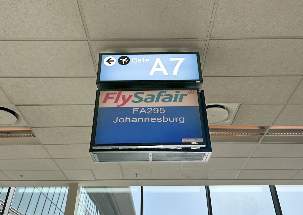 飛行機は南アフリカではお馴染みのSafairで、昼過ぎの出発。1時間半ほどのフライトでした。