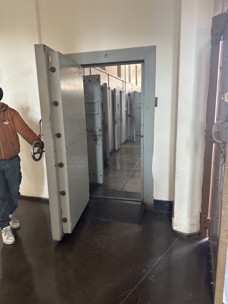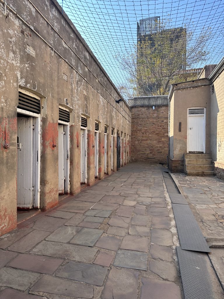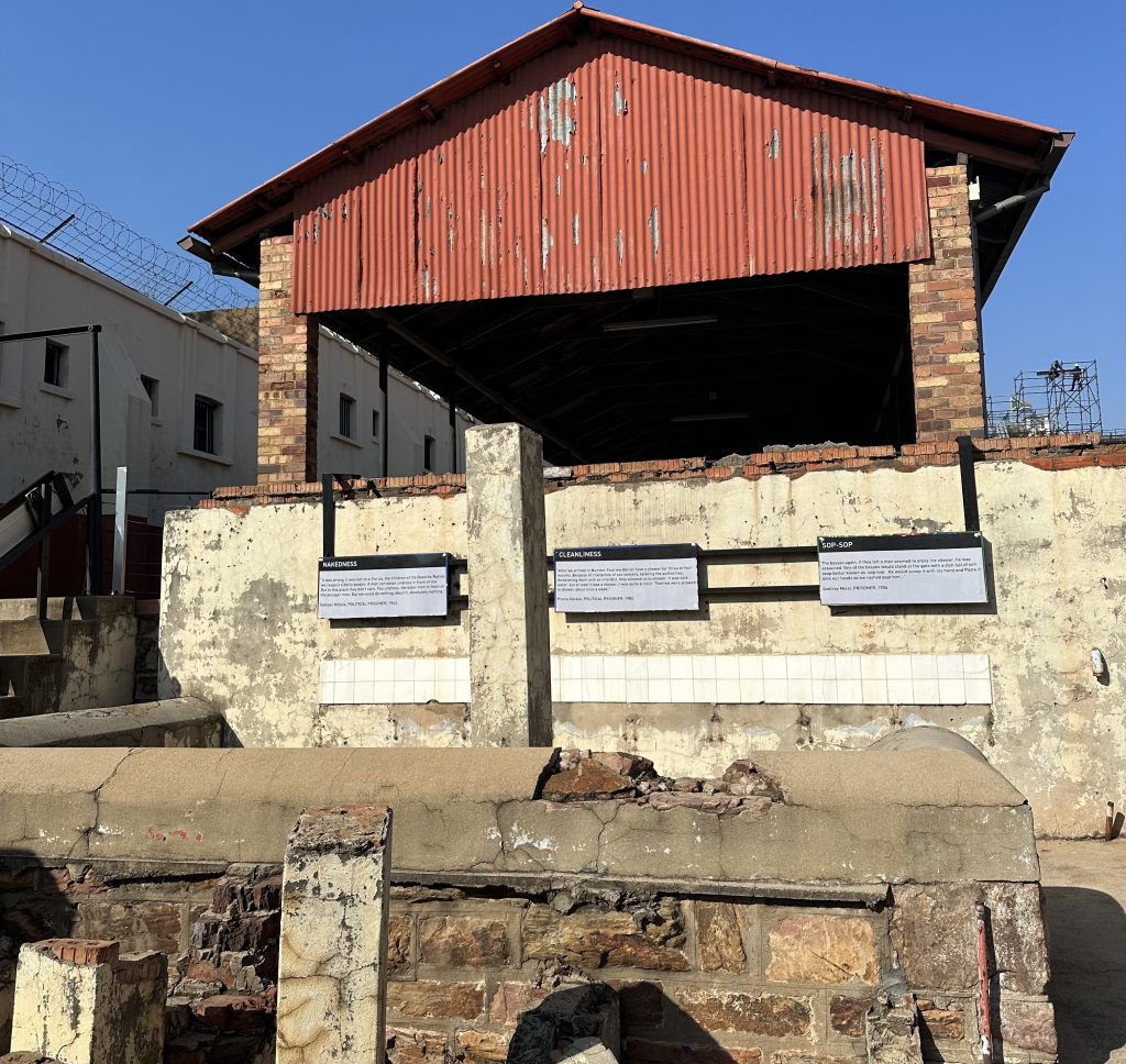 まず最初についたのがコンスティチューションヒル。今は憲法裁判所として使用されている場所ですが、かつてはネルソンマンデラやマハトマガンジーが収容されていた場所で、監獄が今も残っています。