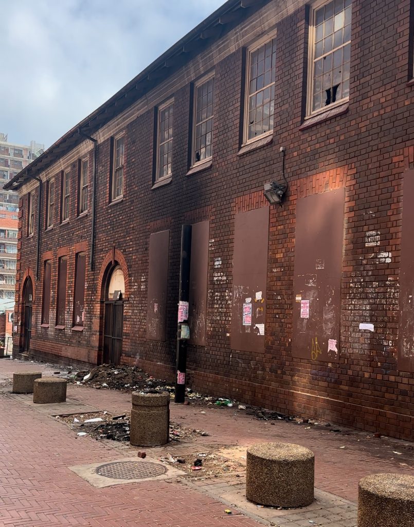 アパルトヘイト撤廃後の1990年代に、白人専用居住区だったこの地域一体に黒人をはじめ、多くの失業移民の流入が起こりました。この地域のビルのオーナーは移民の数が多すぎるため、入居者をコントロールできなかったり、家賃徴取できなくなり、物件を泣く泣く手放さざるおえない状況に。それに漬け込むようにさらに不法移民による不法滞在が横行。警察による不要移民の立ち退きもできず、行政サービスも停止となり実質、無法地帯となった。それに乗じるように、ギャング、マフィアの巣窟となったそうです。