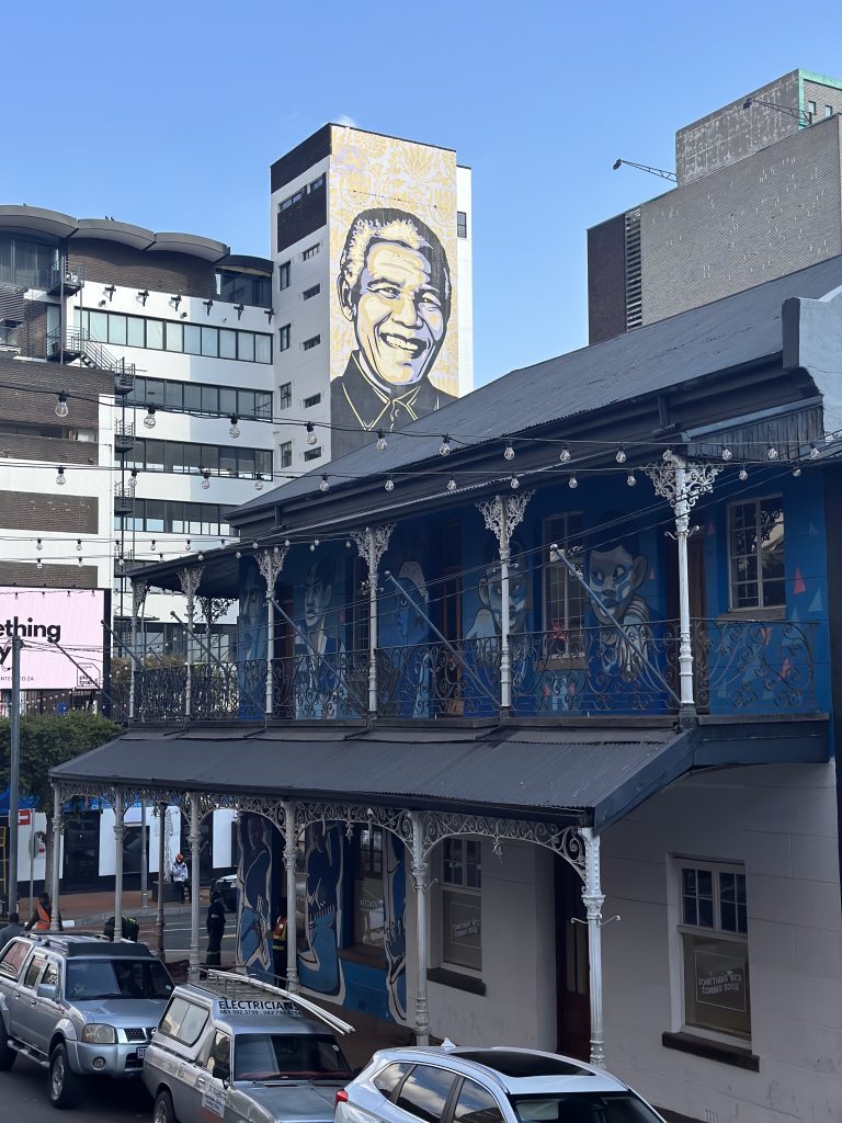 今回は途中下車せず街の風景を見て楽しみました。ところどころにネルソンマンデラのウォールアートがありました。